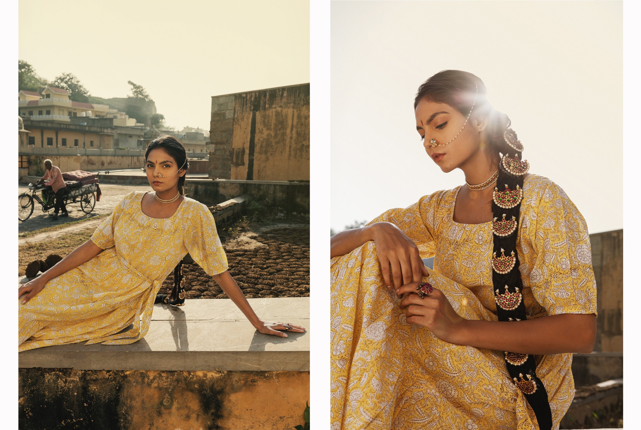 As a freelance stylist, you are simultaneously working on commercial projects (e-commerce and lookbook shoots) which now and then light up the urge to create thought-provoking photo series. Similar impulse led me and my team to this project. The budding idea was to create a fusion of casual wear with Indian traditional festive jewellery. As the journey begun, we realised the depth these pictures could portray. Instantly, you start to think about the million times you have to ask yourself and the world “WHY NOT?”
