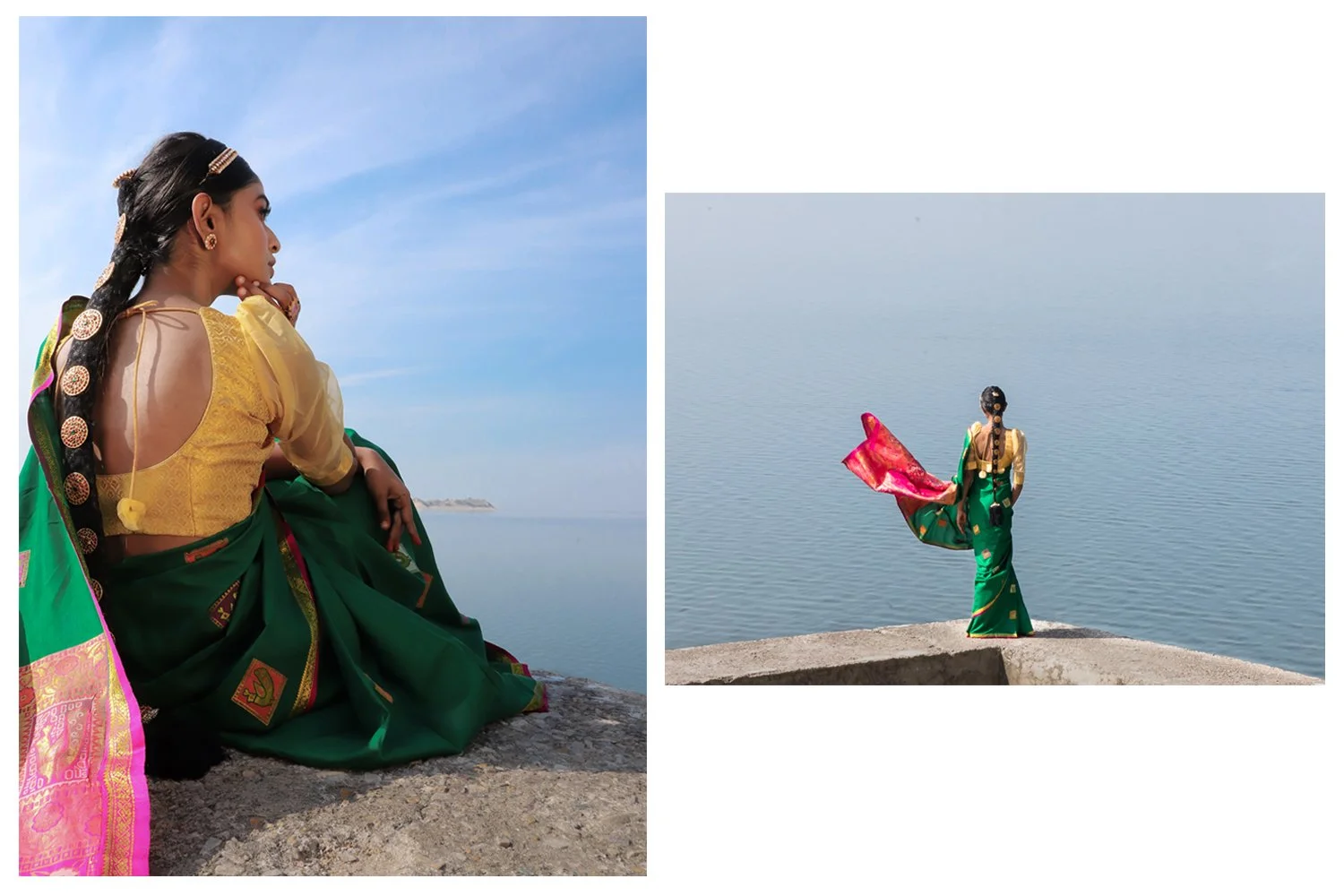 ”Bhor bhayi” is a windy take on today’s brides. It is about celebrating the upcoming while reminiscing the past, about adoring what the nature beholds and chasing one’s dreams through every dusk and dawn. There is nothing holding her back and nothing is forlorn.
