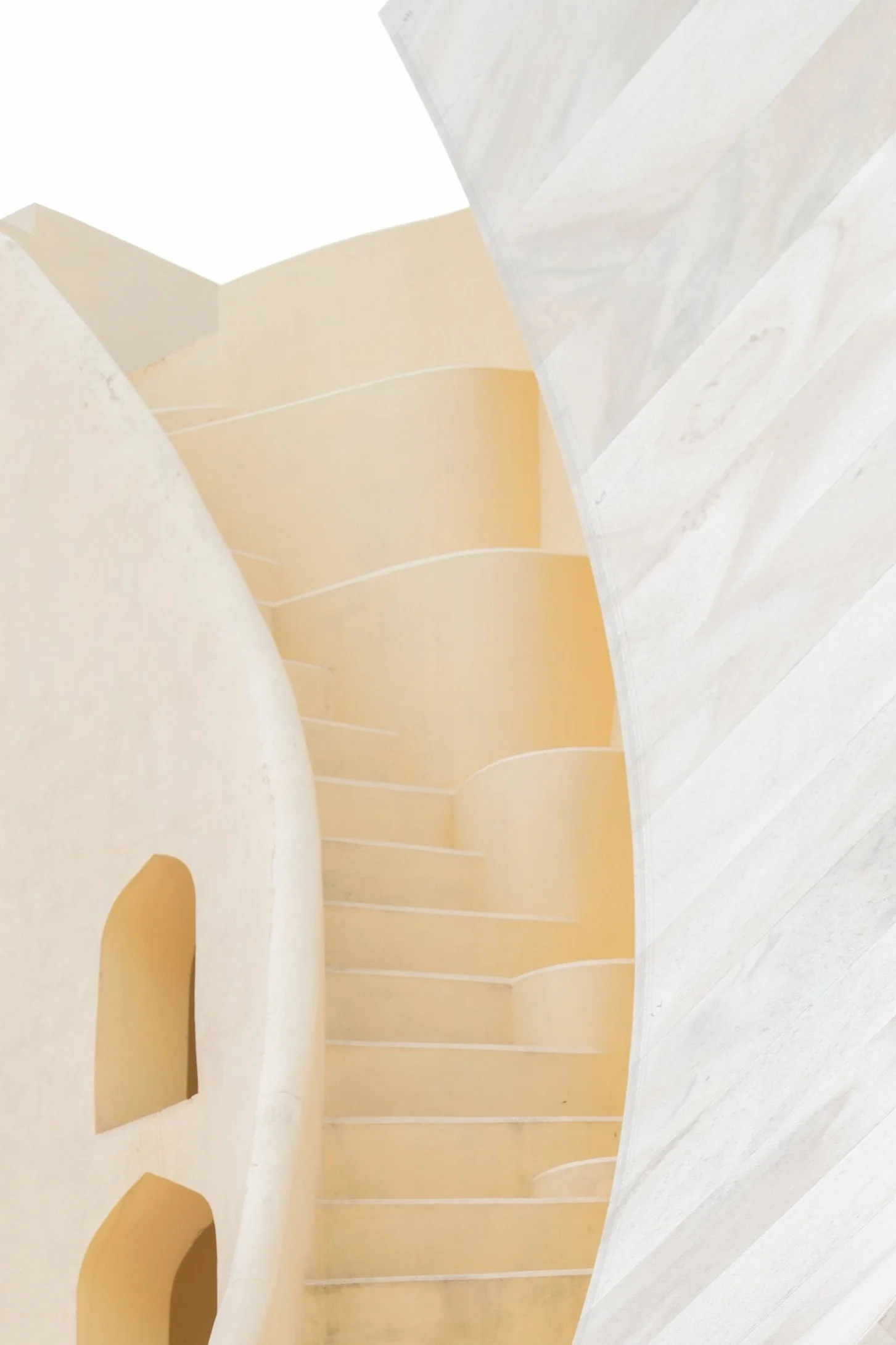 Entering the Jantar Mantar, one of the Seven Wonders of the World, on an unexpectedly windy day in the midst of a cold January, our team sensed that today's shoot would be musical. From the model's hair gently swaying to the flow of soft linen dresses, to the graceful movements against the breezy backdrop, every element harmonized seamlessly with the brand's vision, culture, and aesthetics.